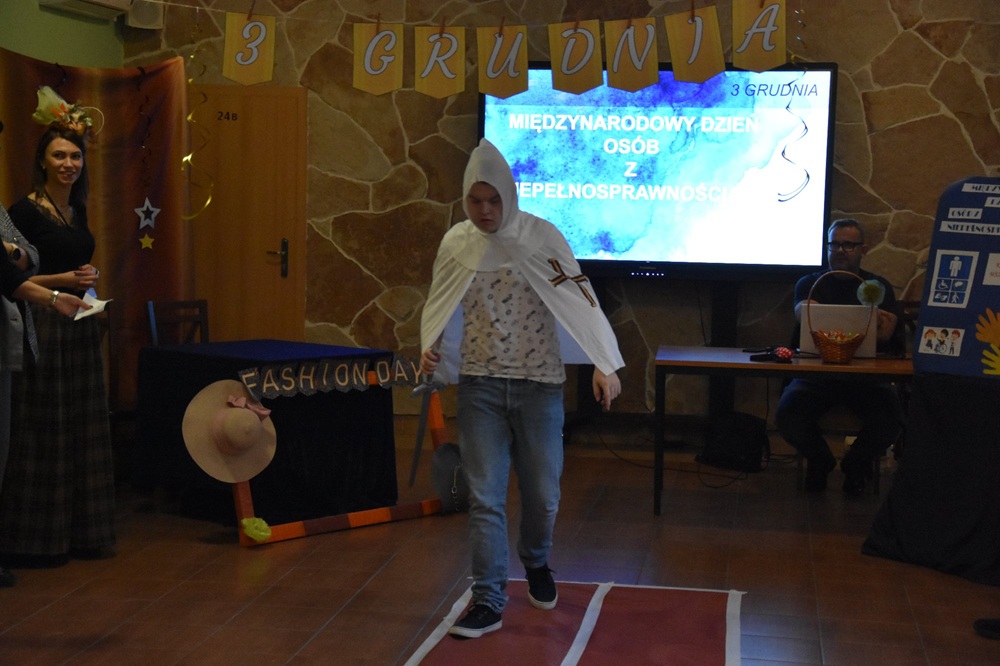 3 grudnia obchodzimy ustanowiony w 1992 roku przez Organizacje Narodów Zjednoczonych Międzynarodowy Dzień Osób Niepełnosprawnych. Celem obchodów jest zwrócenie uwagi społeczeństwa na problemy osób niepełnosprawnych. Prawie 1 osoba na 10 osób na świecie jest osobą niepełnosprawnością. Często ta niepełnosprawność nie jest widoczna, dlatego też tak istotne jest uważne spojrzenie na drugiego człowieka, empatia i otwartość. Jesteśmy inni ale równi. I właśnie z takim przewodnim hasłem uczniowie Szkoły Przysposabiającej do Pracy świętowali ten dzień. Po krótkiej prezentacji odbył się pokaz mody, gdzie chętni uczniowie prezentowali swoje unikatowe stroje. Całość zwieńczyła wspólna zabawa i śpiew.