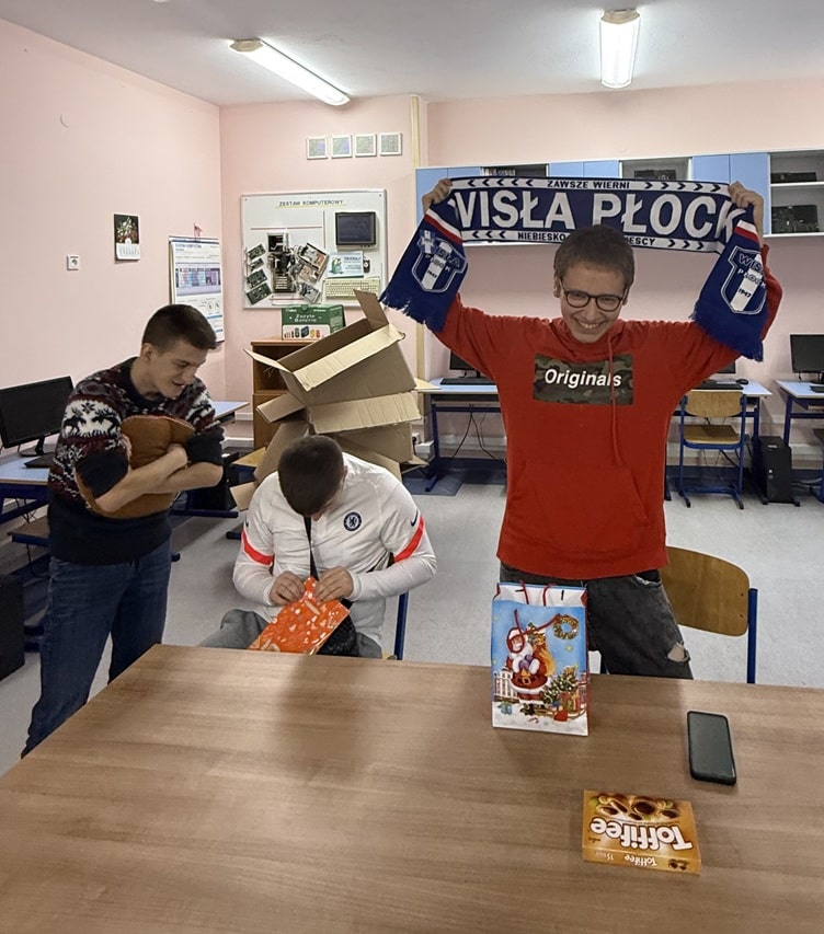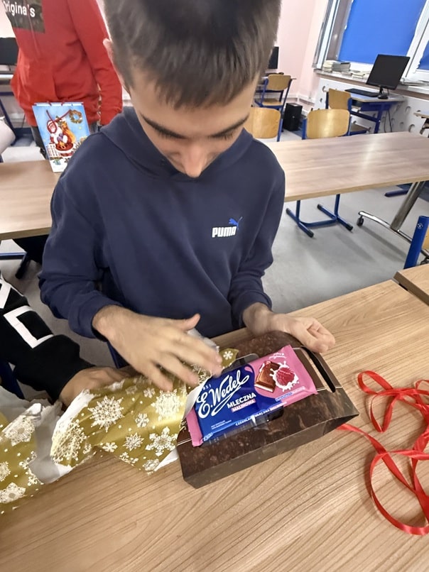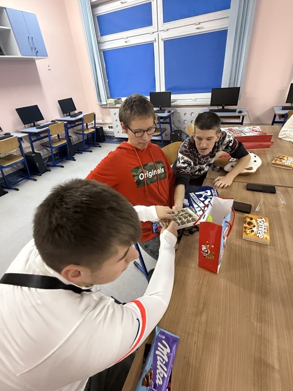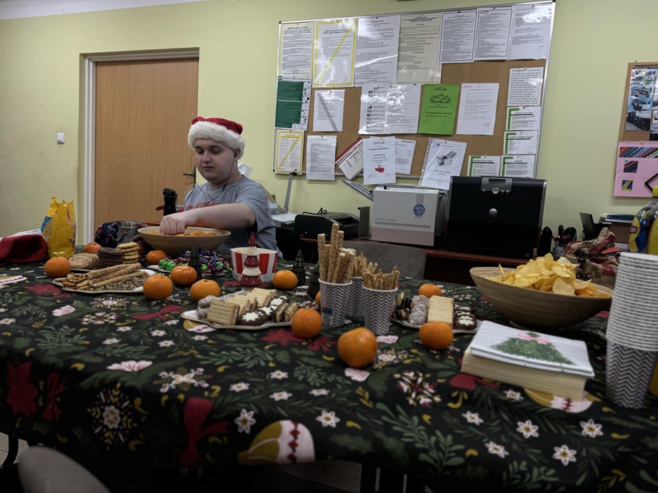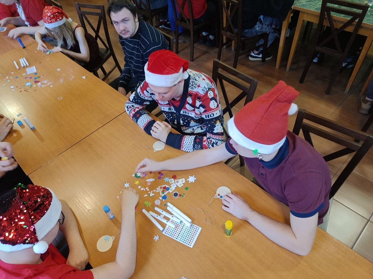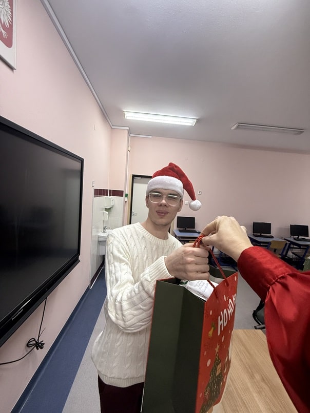 Dnia 5.12.2025 r. odbyły się Mikołajki w Szkole Przysposabiającej do Pracy. Zabawa rozpoczęła się od wysłuchania historii o Świętym Mikołaju. Po niej obył się quiz zawierający pytania i zagadki dotyczące Mikołajek, z którymi uczniowie poradzili sobie bez większych problemów. Kolejną część Mikołajek to udział w warsztatach - uczniowie wykonywali według własnego pomysłu bombki na choinkę, które zabrali do domu. Imprezę zakończyła oczywiście zabawa muzyczno - ruchowa ze świątecznymi utworami.