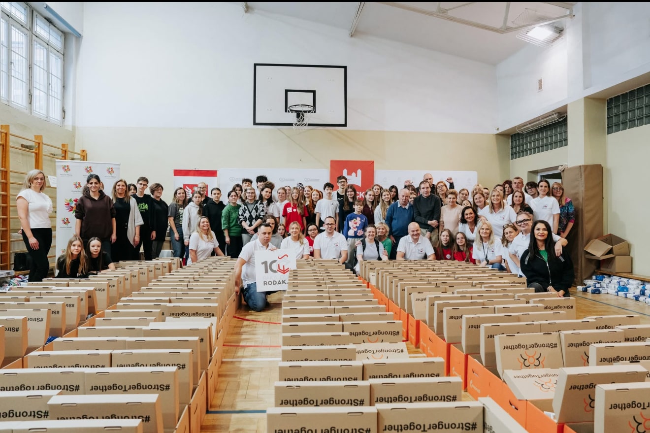Zakończyła się 10 jubileuszowa edycja akcji „Paka dla Rodaka”, której głównym organizatorem jest Fundacja Przystanek Rodzina. W akcji tej udało nam się zebrać imponującą ilość produktów dla naszych rodaków mieszkających poza granicami kraju. W sobotę 29 listopada w Szkole Podstawowej nr 12 w Płocku przedstawiciele Samorządu Uczniowskiego naszego Ośrodka wzięli udział w przygotowywaniu paczek świątecznych, które zostaną przekazane już wkrótce do Polaków w Rumunii, Mołdawii oraz na Litwie. W tym roku zebraliśmy ponad 900 paczek makaronu oraz sporą ilość słodyczy, które trafią do naszych rodaków. Zebrane dary pomogą nie tylko w codziennym funkcjonowaniu rodzin, ale również sprawią im wiele radości, szczególnie w okresie przedświątecznym. Oprócz zbiórki produktów prowadziliśmy także zbiórkę pieniężną. Udało nam się zebrać 461 złotych. Jubileuszowa edycja akcji po raz kolejny pokazała, jak wielka siła tkwi we wspólnym działaniu i solidarności. Serdecznie dziękujemy wszystkim osobom, które włączyły się w zbiórkę - każda przekazana paczka to realne wsparcie i piękny gest pamięci o naszych rodakach. Ponadto dwoje uczniów Branżowej Szkoły I Stopnia - przedstawiciele SU - Dominika Gradkiewicz z klasy III g oraz Mateusz Paluszewski z klasy III e wzięło udział w II Miejskim Konkursie Plastycznym ,,Paka dla Rodaka’’ zorganizowanym przez Młodzieżowy Dom Kultury w Płocku. Jest nam niezmiernie miło i czujemy się zaszczyceni, że mogliśmy uczestniczyć w tak szczytnej inicjatywie.