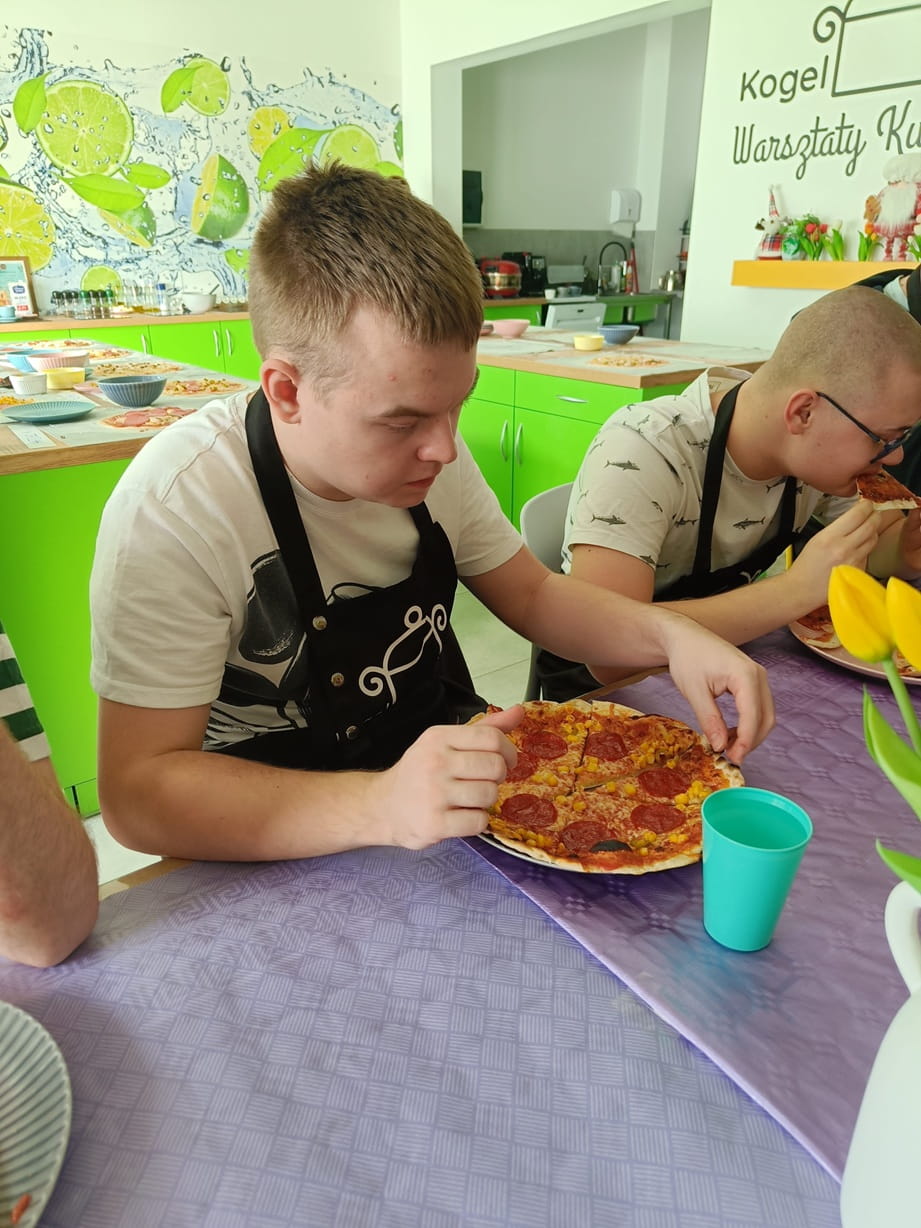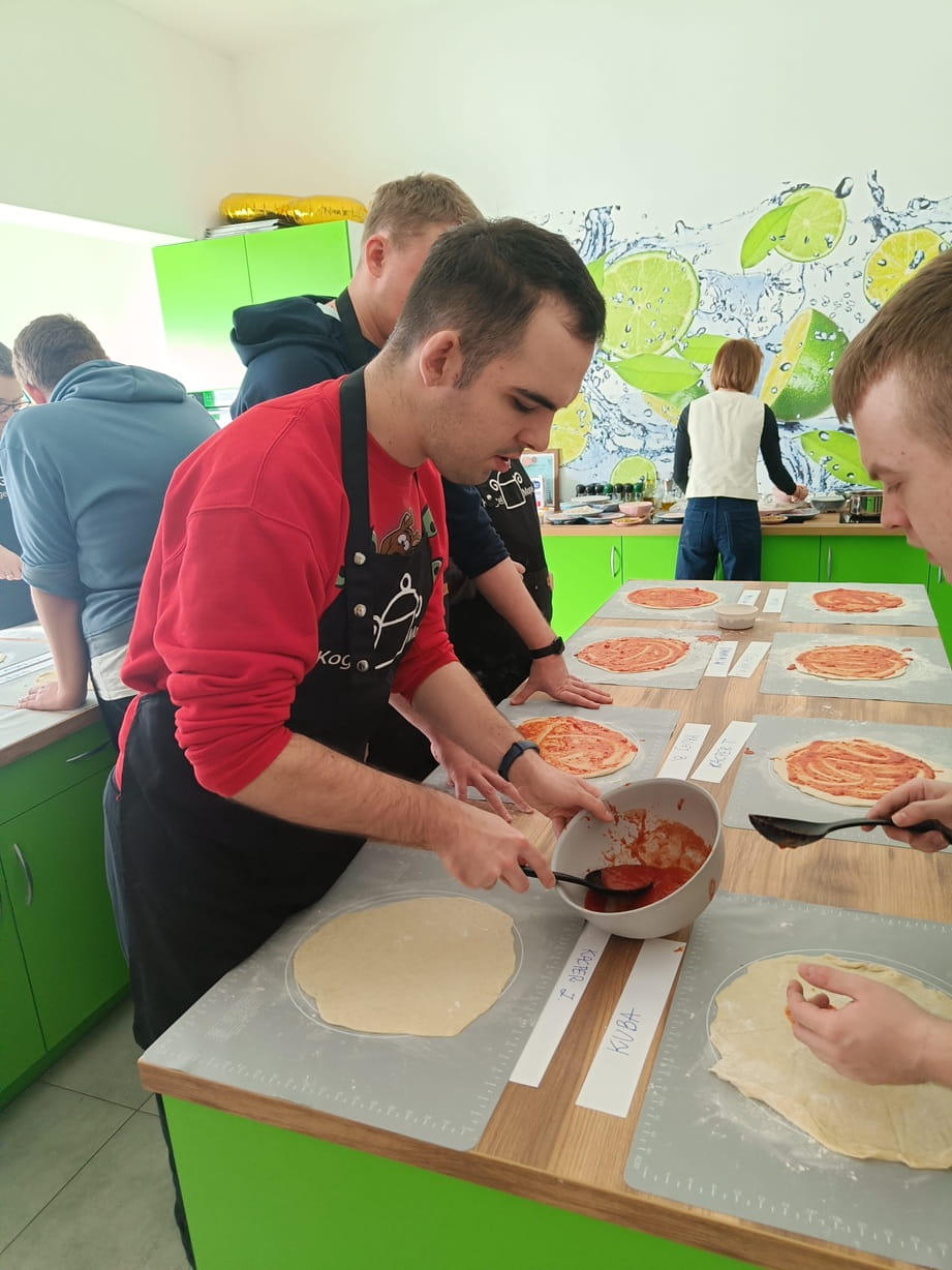 Dnia 20.02.2026 r. uczniowie klasy I B, I D, I E i III E Szkoły Przysposabiającej do Pracy udali się do Pracowni Kulinarnej Kogel Mogel. Celem wizyty było uczestnictwo w warsztatach kulinarnych. Uczniowie mogli sprawdzić się w przygotowywaniu własnoręcznie ciasta do pizzy, doborze składników według swojego uznania, a końcowym etapem było wypiekanie i skonsumowanie. Uczestnicy mogli poznać tajniki przygotowywania tego pysznego włoskiego specjału, poczuć się jak główni kucharze pizzerii. Było to bardzo ciekawe doświadczenie i nabycie nowych umiejętności. Serdeczne podziękowania dla Pani Marty za ciekawą przygodę kulinarną w jej pracowni.