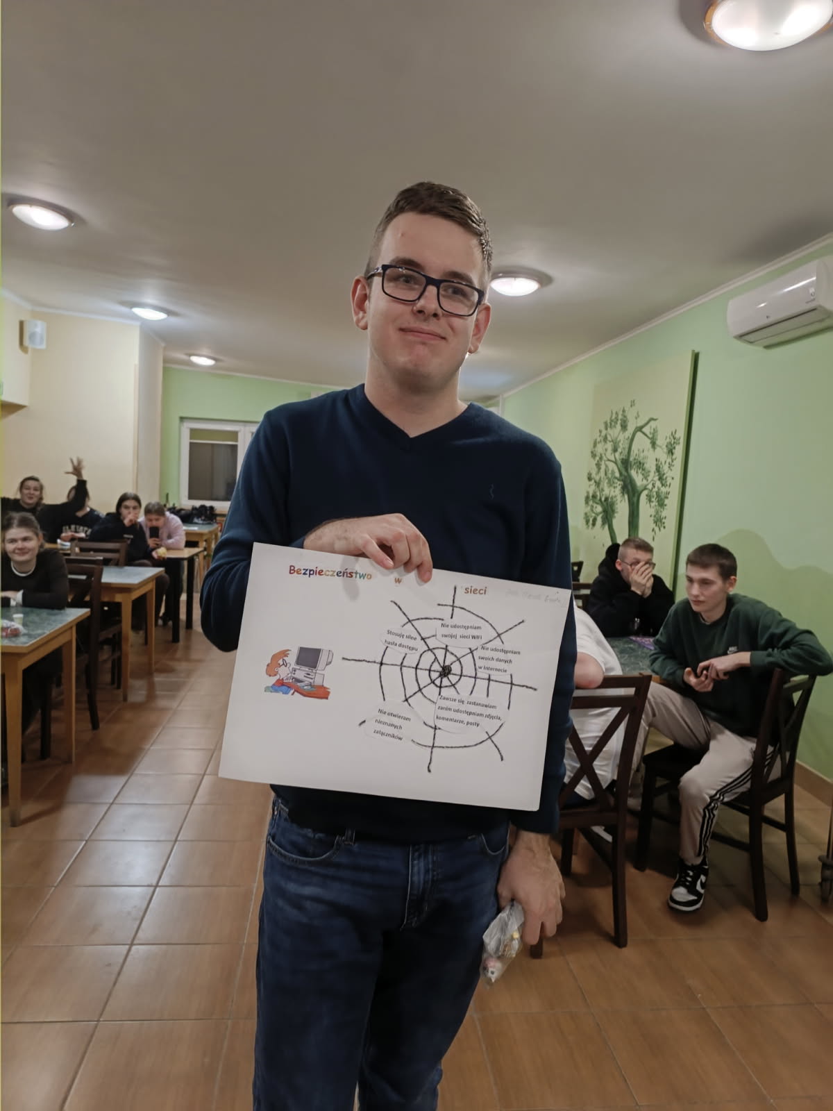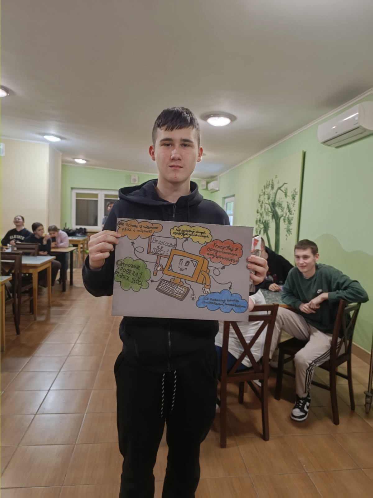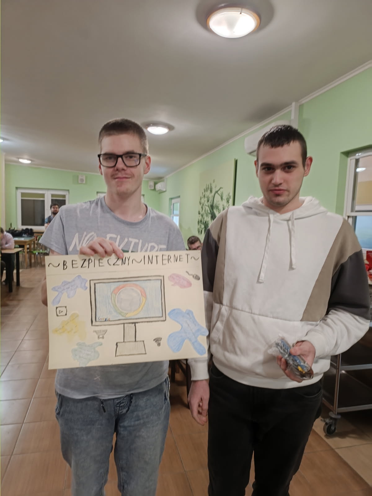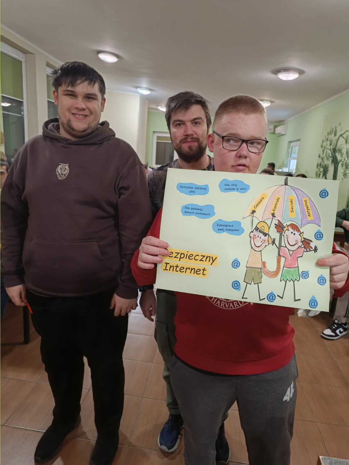 Z przyjemnością informujemy, iż konkurs "Bezpieczny Internet" organizowanego przez Samorząd Internacki został rozstrzygnięty. 16 lutego w naszym Internacie odbyło się rozstrzygnięcie konkursu plastycznego „Bezpieczny Internet – Twoje bezpieczeństwo w sieci”, skierowanego do wszystkich wychowanków. Konkurs był elementem działań profilaktycznych związanych z obchodami Dnia Bezpiecznego Internetu , który miał na celu promowanie właściwych postaw w świecie cyfrowym. Wychowankowie wykazali się ogromną pomysłowością i wrażliwością na temat bezpieczeństwa cyfrowego. W swoich pracach przedstawiali m.in. konieczność ochrony danych osobowych, tworzenia silnych haseł, unikania kontaktów z nieznajomymi w sieci oraz kulturalnego zachowania w Internecie. Wszystkie prace zostały nagrodzone. W kategorii praca grupowa: I miejsce zdobyła grupa III II miejsce zdobyła grupa VI III miejsce zdobyła grupa VII W kategorii praca indywidualna: I miejsce zdobył Michał Szprengiel z grupy I II miejsce zdobył Jakub Raczyński z grupy V III miejsce zdobyła Barbara Frączkiewicz z grupy II Serdecznie gratulujemy zwycięzcom oraz dziękujemy wszystkim uczestnikom za zaangażowanie i piękne, przemyślane prace. Każda z nich była ważnym głosem w dyskusji o bezpieczeństwie w sieci. Mamy nadzieję, że zdobyta wiedza i refleksje towarzyszące konkursowi przełożą się na codzienne, odpowiedzialne korzystanie z Internetu.