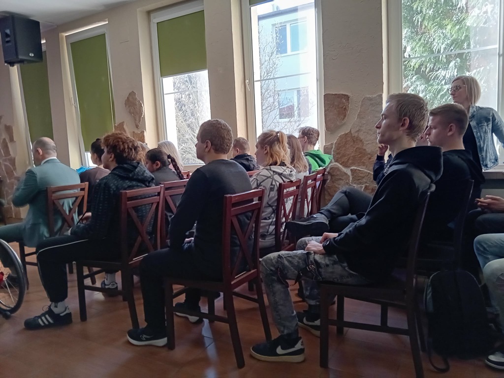 Dziś naszą szkołę odwiedzili funkcjonariusze policji, którzy przeprowadzili lekcję pt. „Bezpieczne ferie zimowe”. Podczas spotkania uczniowie dowiedzieli się, jak dbać o swoje bezpieczeństwo w czasie zimowego wypoczynku – zarówno w domu, jak i na świeżym powietrzu. Policjanci przypomnieli zasady bezpiecznej zabawy na śniegu i lodzie oraz omówili, jak reagować w sytuacjach zagrożenia. Dużym zainteresowaniem cieszyła się część praktyczna, podczas której młodzież miała możliwość przymierzenia policyjnych akcesoriów i bliżej poznać specyfikę pracy funkcjonariuszy. Spotkanie przebiegło w miłej i pouczającej atmosferze, a uczniowie chętnie zadawali pytania i aktywnie uczestniczyli w zajęciach.