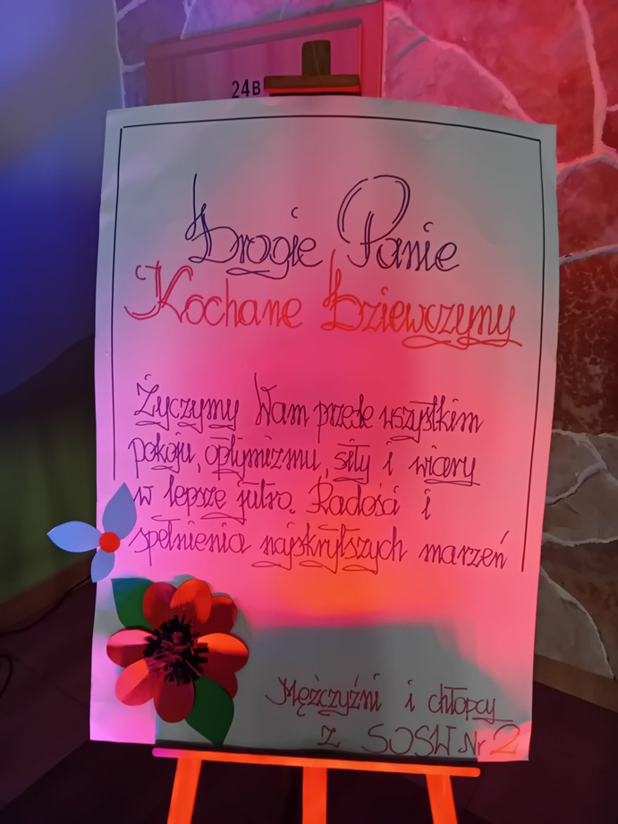 Wszystkie Panie z SOSW nr 2 w Płocku serdecznie dziękują za miłe słowa, życzenia, gesty, piękną uroczystość, piosenki, słodkości i upominki – które otrzymałyśmy od Was w dniu naszego święta. Szczęście to mieć takich dżentelmenów obok siebie. 😉