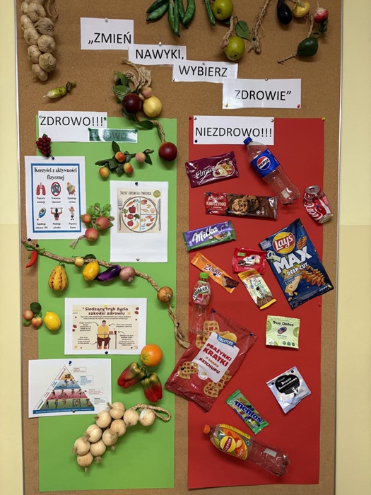 W dniach od 02.03.2026r.- 06.03.2026 r. w naszej Szkole odbył się konkurs pt: „Zmień nawyki, wybierz zdrowie”. Głównym założeniem inicjatywy było promowanie wśród młodzieży szkolnej zasad zdrowego odżywiania, znaczenia aktywności fizycznej oraz uświadamianie wpływu codziennych wyborów na samopoczucie i kondycję organizmu. Konkurs miał na celu pobudzenie kreatywności uczniów oraz zachęcenie do krytycznego spojrzenia na popularne, niezdrowe nawyki żywieniowe. Zadaniem uczestników było przygotowanie plakatu promującego zdrowe odżywianie. Wydarzenie cieszyło się dużym zainteresowaniem – do komisji konkursowej wpłynęły prace, które charakteryzowały się wysokim poziomem merytorycznym oraz estetycznym. Konkurs „Zmień nawyki, wybierz zdrowie” okazał się skutecznym narzędziem edukacyjnym. Uczniowie wykazali się dużą świadomością w zakresie profilaktyki zdrowia. Prace konkursowe zostały wyeksponowane w korytarzu szkoły, tworząc gazetkę edukacyjną dla całej społeczności szkolnej.
